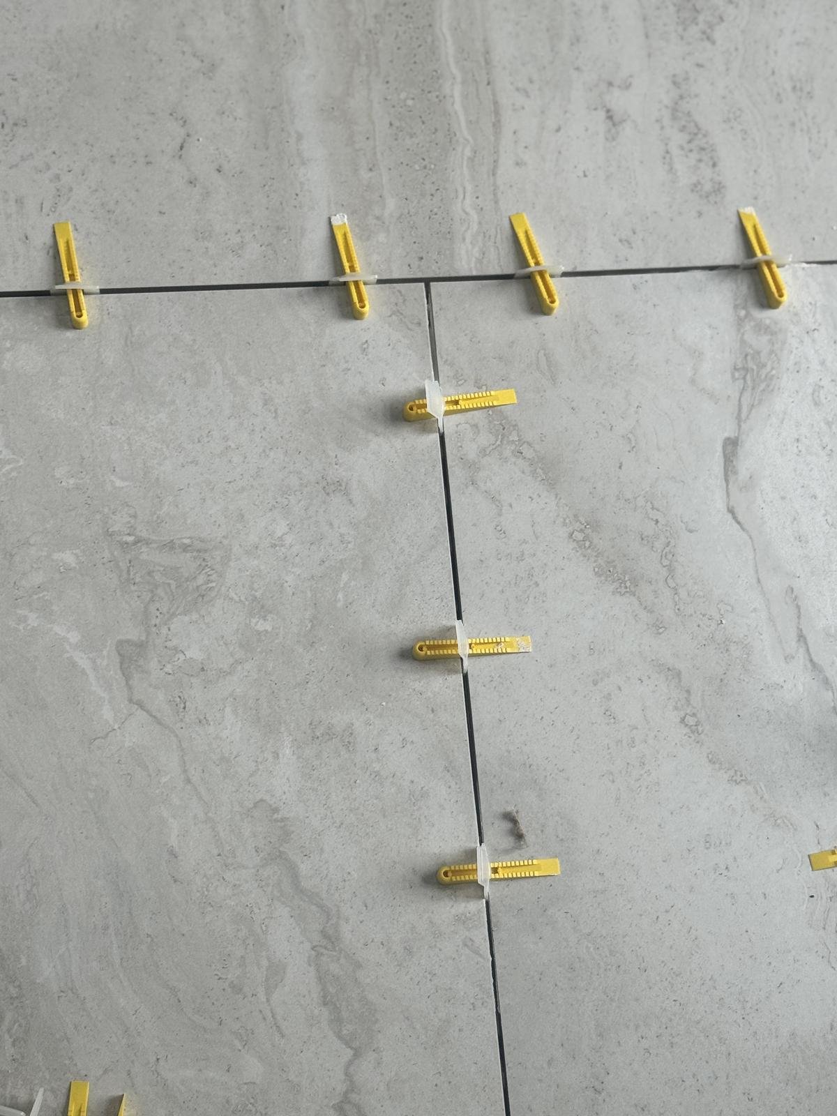 These 24x48 porcelain tiles are already making a huge difference with fewer grout lines the floor feels sleek and seamless.